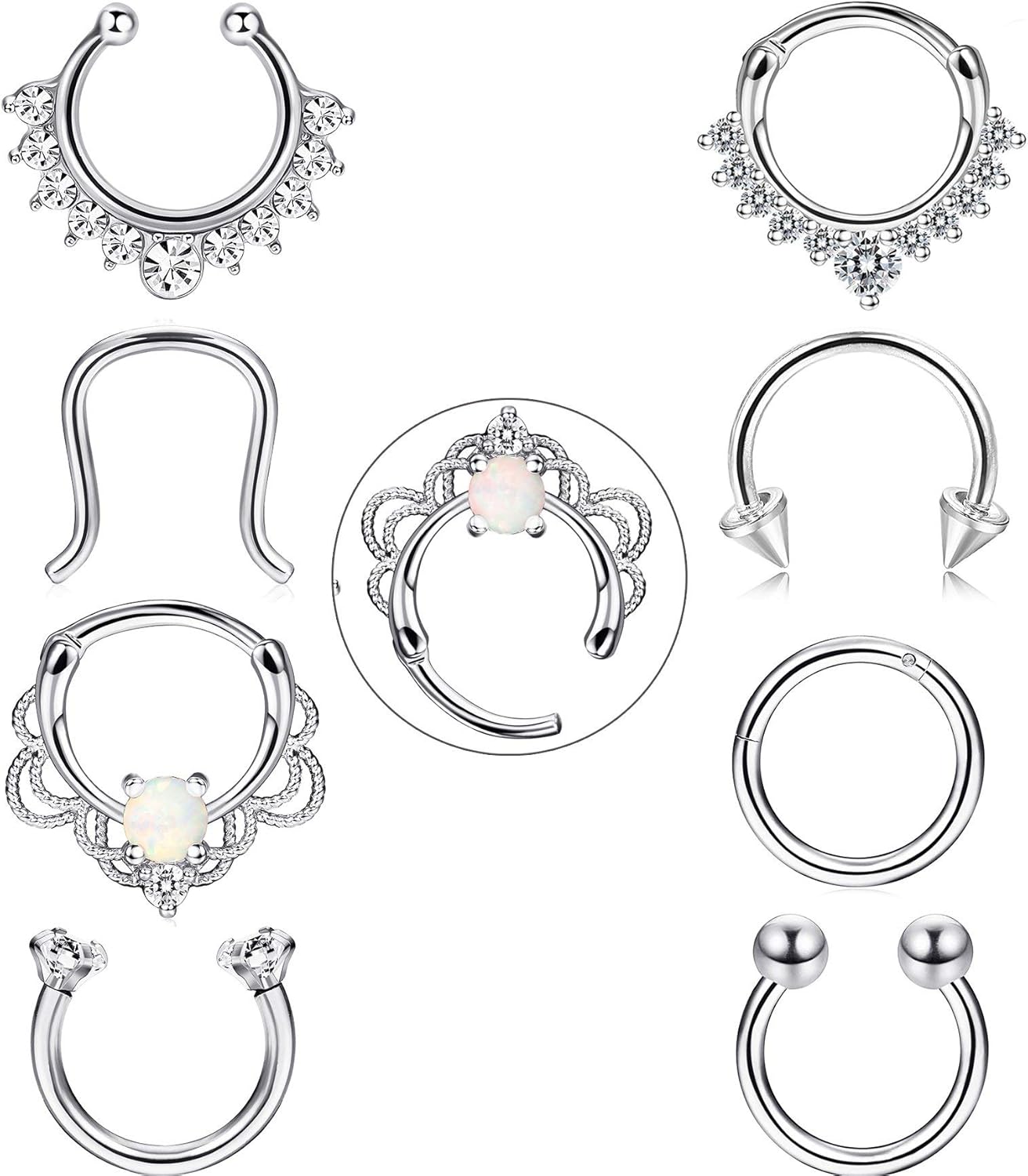 Amazon Com Fibo Steel 8 Pcs 16g Septum Piercing Nose Rings Hoop Cartilage Tragus Retainer Body Piercing Jewelry S Clothing